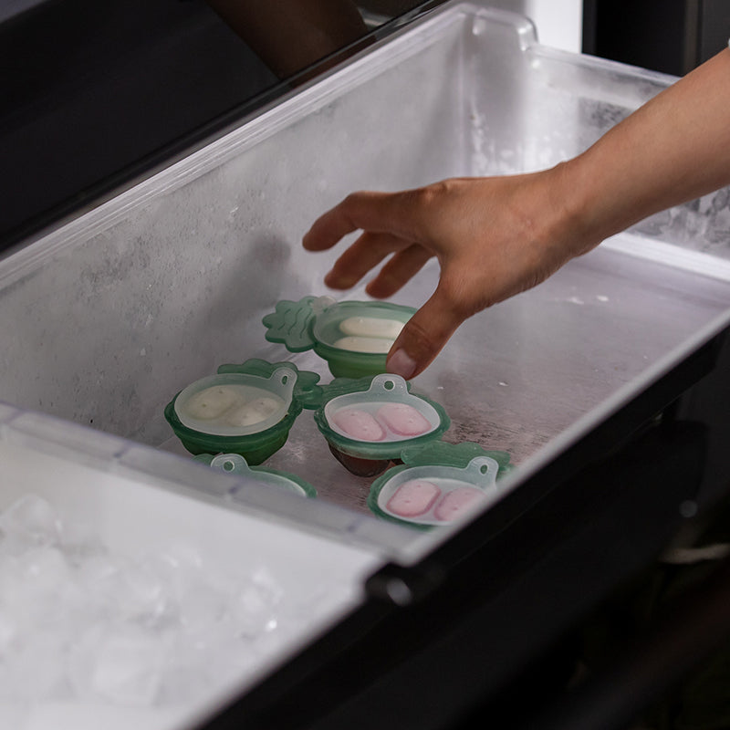The Haakaa Fresh Food Feeder Mini Combo is the perfect way to safely introduce new flavours to your baby while providing cooling relief for teething gums! Combining the always popular Fresh Food Feeder with a mini version of our Pineapple Nibble Tray, this combo freezes perfectly-sized portions of food, allowing your child to explore new flavours and textures without the risk of choking. This set is small enough to pop in your bag, so you'll always have it to hand when you're away from home. Best of all, the Freeze-N-Feed Mini Combo is super easy to use. Simply fill the Nibble Tray compartments with breastmilk, puréed food, or other favourites and freeze. Pop one out when required and place in the Feeder pouch, assemble, and seal tight.