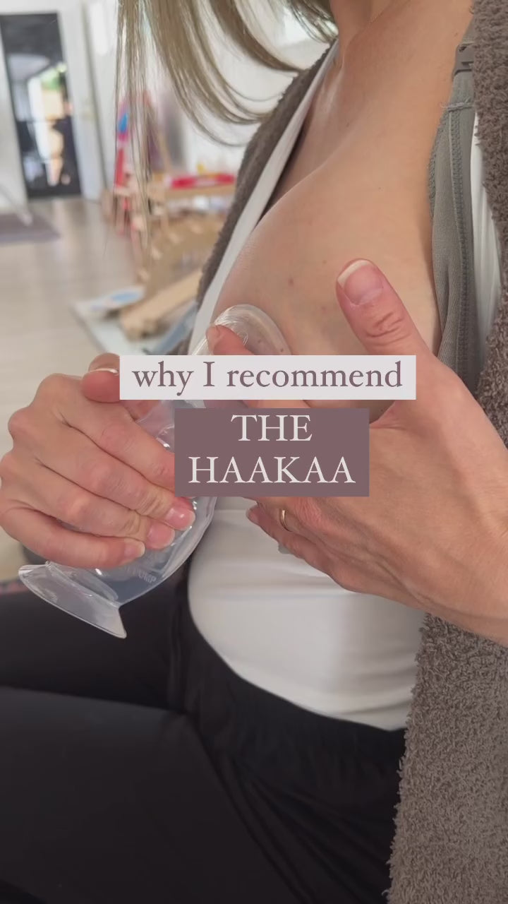 Tips: Encourage let-down by placing a warm flannel on top of your breast and massaging gently. While your child is feeding, attach your Haakaa pump to the other breast to catch precious milk that would otherwise be lost in a nursing pad.