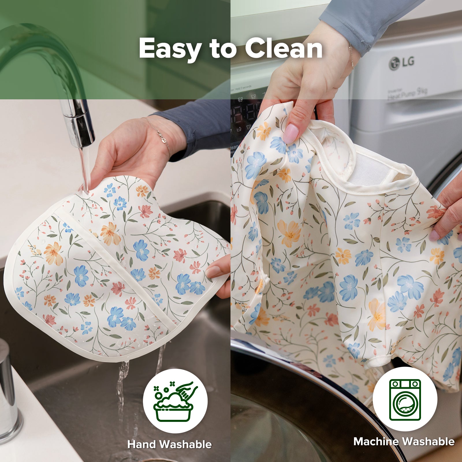 From breakfast spills to craft-time splatters, Haakaa's Mess-free Smock & Bib Set is your all-in-one solution to everyday mess. The bib makes mealtime cleanups easier than ever thanks to its wide coverage and deep crumb-catching pocket, while the smock offers full upper-body protection for those extra messy moments, including art time! Both are made from lightweight spill-resistant fabric that helps keep clothes clean and dry with minimal effort.
